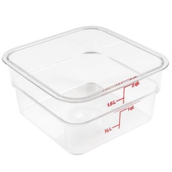 CamSquare® Food Container, 2 qt., 7-1/4″L x 7-1/4″W x 3-7/8″H, red graduation, polycarbonate, dishwasher safe, resists stains & odors, clear, NSF