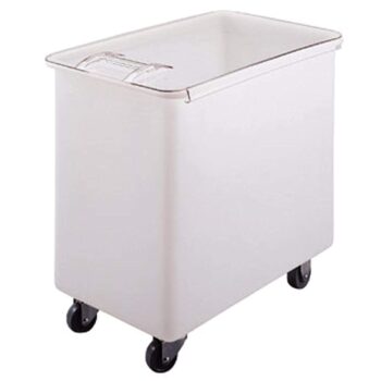 Ingredient Bin, mobile, 42-1/2 gallon capacity, molded polyethylene with sliding cover, (4) 3″ heavy duty casters (2 front swivel, 2 fixed), with bin securely attached to base plate, white with clear cover, NSF